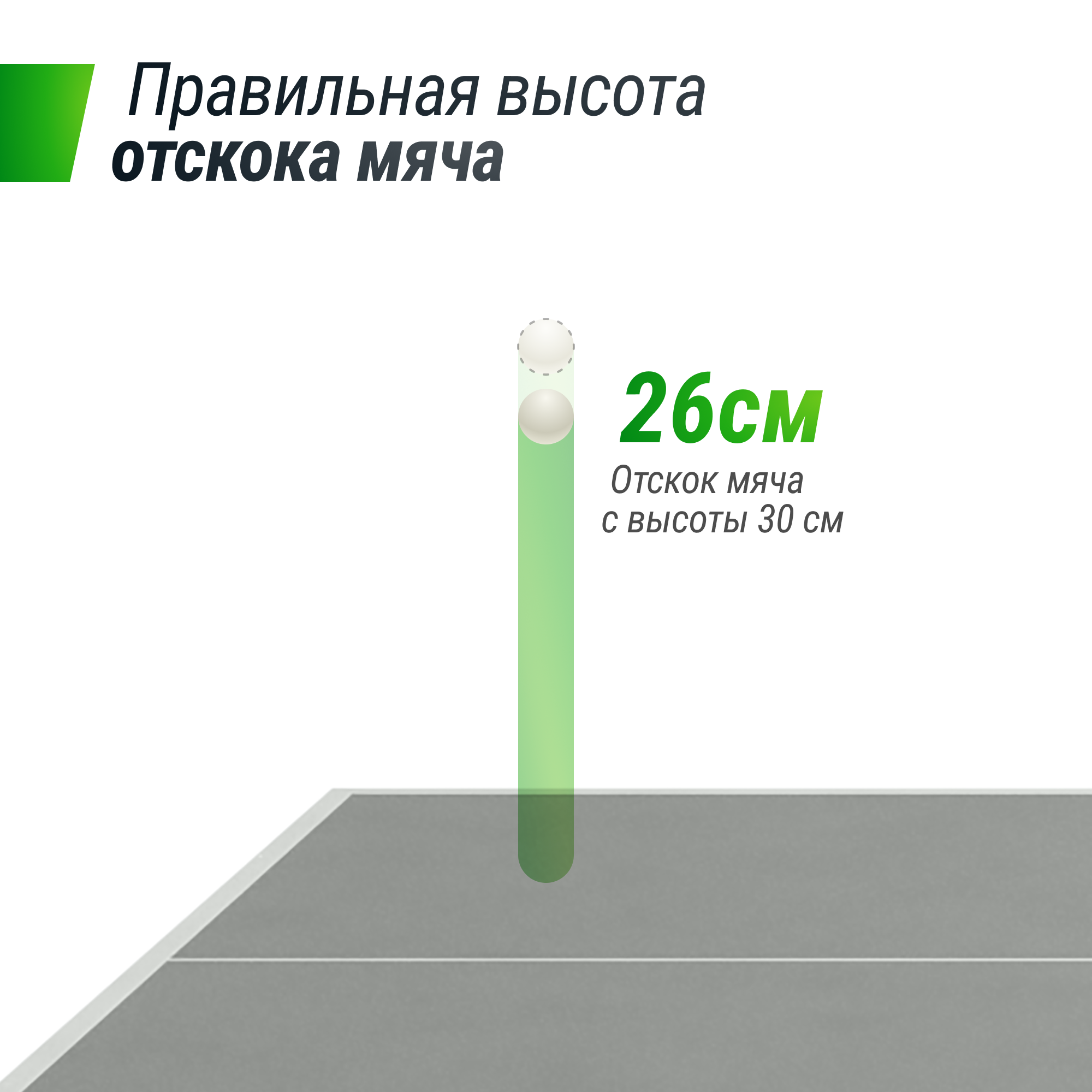 За счет идеального материала для столешницы мяч почти не теряет свою энергию про отскоке от теннисного стола UNIX Line, что позволяет отскакивать ему почти на ту же высоту, с которой он падал. Это свойство позволяет играть с большим комфортом.