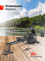 Тренажер построен на прочном каркасе из стали и способен выдержать вес пользователя до 130 кг. Данная конструкция гарантирует стабильность и безопасность во время самых интенсивных тренировок. Благодаря водному сопротивлению создается ощущение настоящей гребли по воде, а увеличивая объем воды в цилиндре можно индивидуально подбирать нагрузку, выбирая из 6 уровней сложности. Прозрачный бак на 10 литров выполнен из пластика, что дает возможность видеть уровень воды, а также создает приятное визуальное ощущение во время занятий, успокаивая нервную систему.