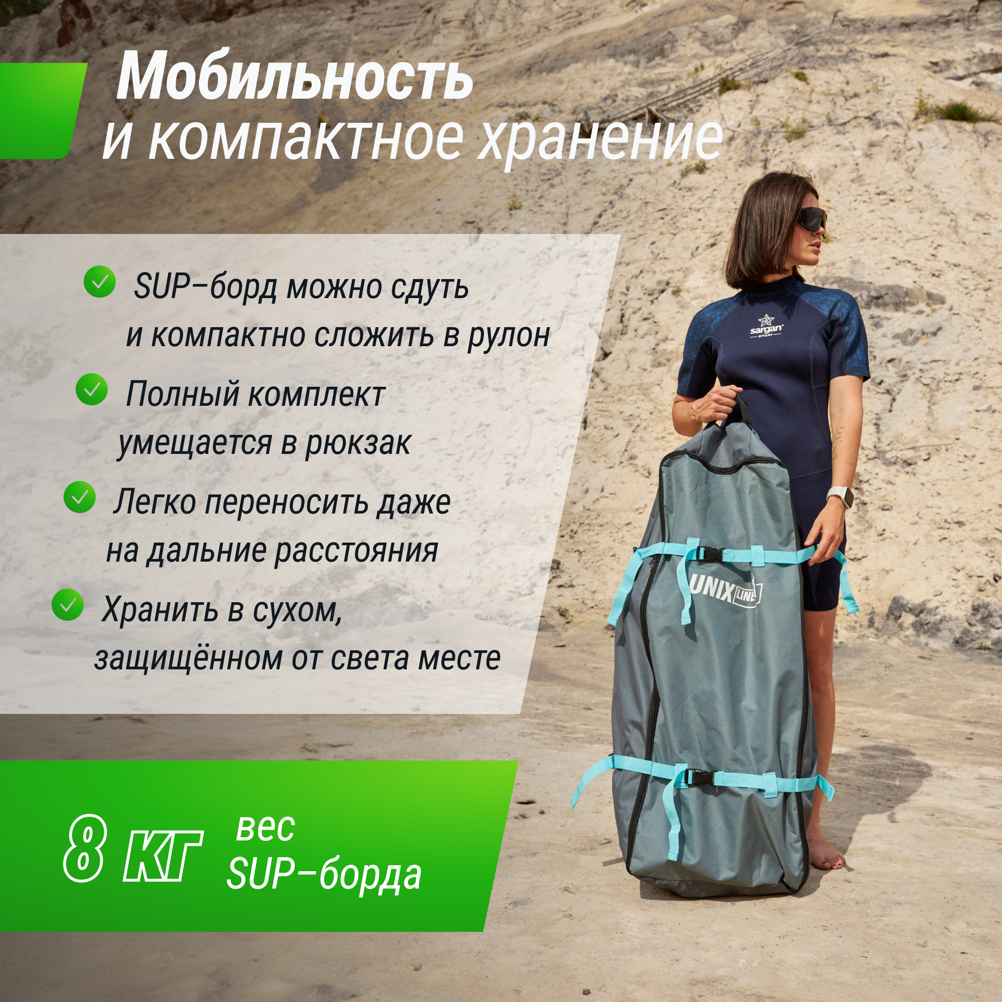 Почувствуйте себя свободным с безопасным и стильным SUP-бордом от UNIX Line, наслаждаясь кристально чистой водой и живописными пейзажами!