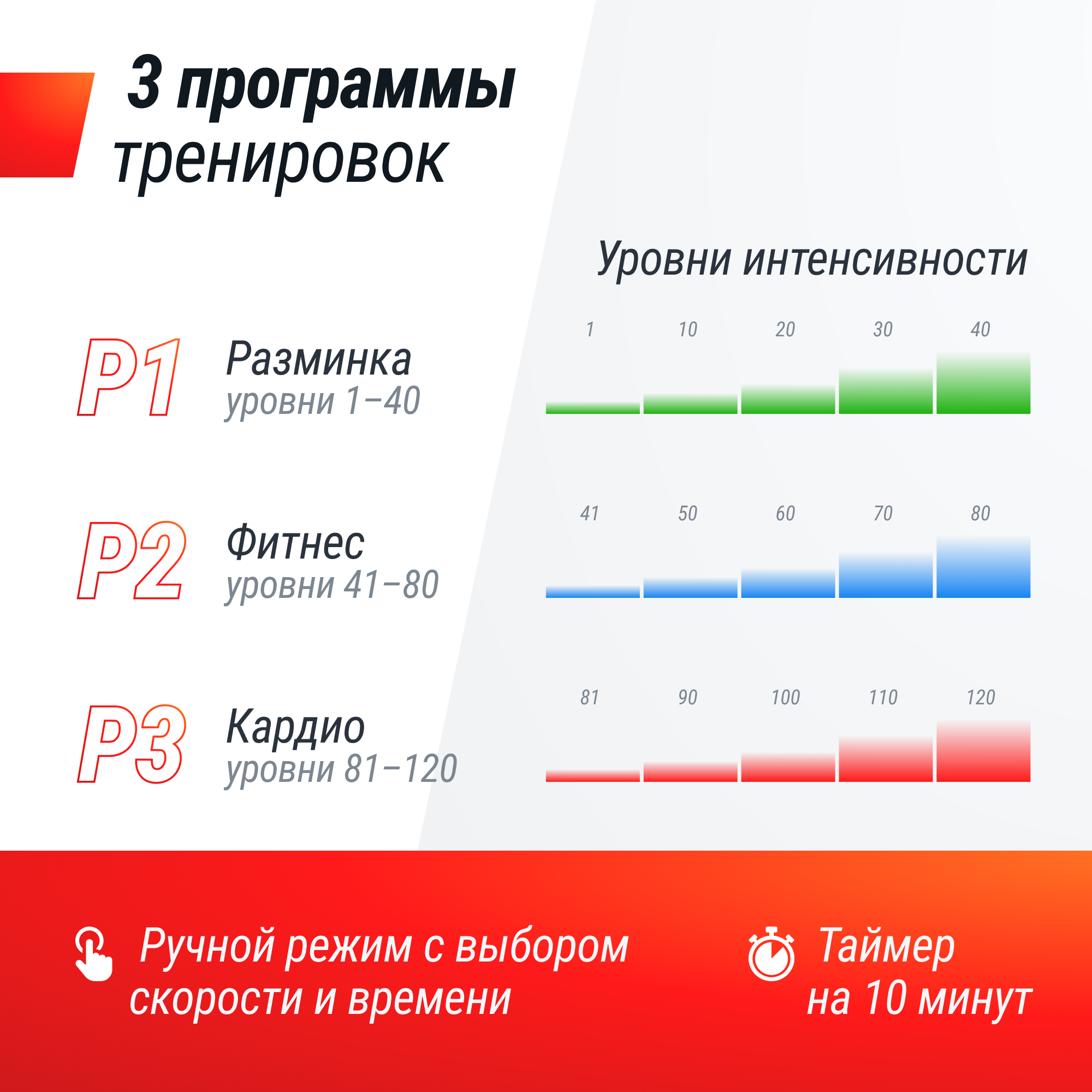 | Показания дисплея | время, программы тренировок, скорость, режимы |